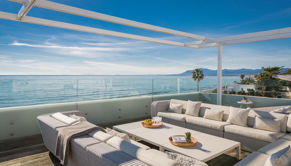 Esta impresionante propiedad, orientada al sureste, ofrece vistas panorámicas al mar y impresionantes puestas de sol, combinando un diseño moderno con los más altos estándares de calidad y comodidad. En la planta principal, un elegante hall de entrada de doble altura conduce a un amplio salón-comedor con grandes ventanales con vistas al mar, conectado a una cocina totalmente equipada con electrodomésticos de última generación. Este nivel también incluye un dormitorio y un baño totalmente equipado. Desde el salón hay acceso directo a la terraza principal, que cuenta con una piscina climatizada de agua salada, una zona de comedor al aire libre y sofás chill-out ideales para relajarse. Un camino privado cruza las dunas y conduce directamente a la playa, garantizando privacidad y exclusividad. En la planta baja, la villa ofrece una zona de bienestar con sauna y bañera relajante, un amplio lavadero, un baño totalmente equipado, y dos dormitorios con luz natural. La primera planta incluye tres dormitorios con impresionantes vistas al mar y acceso directo a la terraza. Uno de los dos baños en este nivel es especialmente grande y también tiene acceso a la terraza, que cuenta con una zona de estar y comedor para disfrutar de las espectaculares vistas. Por último, la planta superior alberga un impresionante solarium en la azotea con jacuzzi, zona chill-out, mesas y sillas, y vistas panorámicas 360° del mar y las montañas. Además, la propiedad está equipada con calefacción por suelo radiante, paneles solares, aire acondicionado centralizado, sistema de sonido inalámbrico, iluminación LED y sistema de riego automático en las zonas exteriores. También hay plaza de aparcamiento al aire libre para hasta cinco coches, proporcionando el máximo confort y comodidad. Una villa verdaderamente única que combina lujo, tecnología y una privilegiada ubicación frente a la playa, ofreciendo un estilo de vida incomparable junto al mar en Marbella.