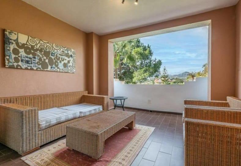 Una de las joyas de este apartamento es su amplia terraza, que ofrece vistas espectaculares al campo de golf. Además, la propiedad incluye una plaza de garaje, proporcionando comodidad y seguridad para su vehículo.
