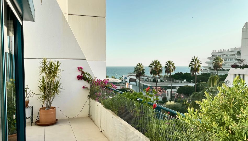 Recién renovado con un elegante estilo escandinavo, este luminoso ático se encuentra en Marbella House, uno de los edificios más emblemáticos de segunda línea de la Milla de Oro y el centro de Marbella. A solo unos pasos del paseo marítimo, ofrece vistas al mar, amplios espacios exteriores y un diseño moderno distribuido en tres niveles.