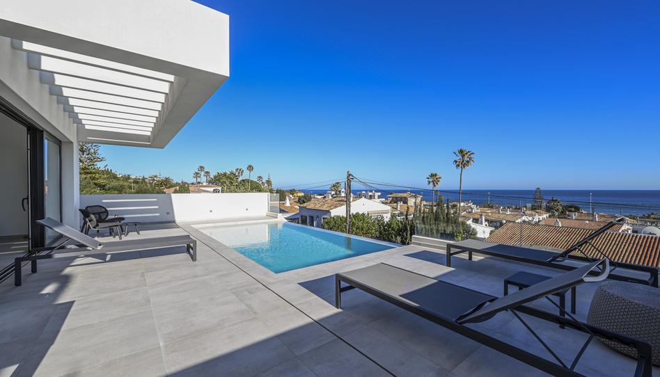 Fantástica y moderna villa con cinco dormitorios y tres baños en El Chaparral. Hermosas vistas panorámicas al mar y a pocos minutos andando de la playa. Solo a cinco minutos en coche del bulevar de La Cala de Mijas.