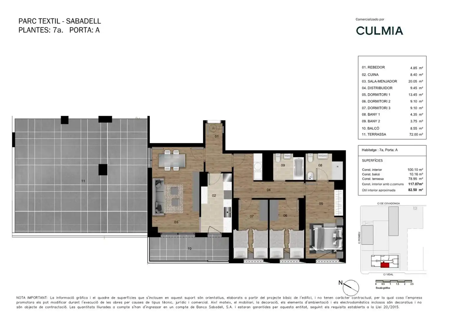 Culmia Parc Tèxtil es una promoción de obra nueva formada por 82 viviendas de 3 y 4 dormitorios con terraza, plazas de garaje y trasteros. En los espacios comunes del complejo se encuentra una piscina en la cubierta del edificio con unas vistas espectaculares.