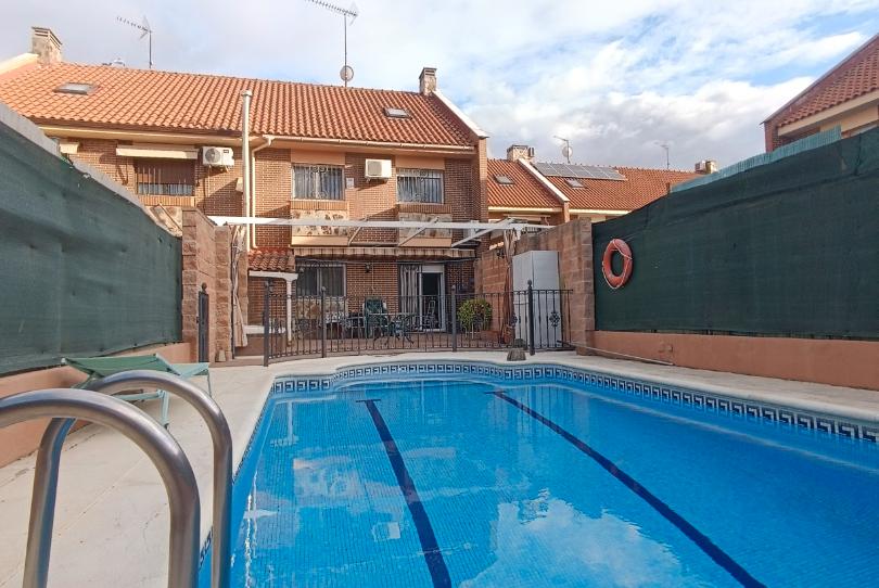 Excelente chalet en Numancia de la Sagra, Plaza Pintor Guerrero Malagón, muy céntrica, bien ubicada, 3 plantas, piscina grande, patio trasero de más de 100 M2, garaje privado, lista para entrar a vivir.