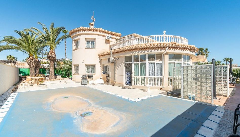 Esta gran villa independiente en parcela de 500 m2 y de más de 190 m2 construidos magníficamente ubicada en el corazón de Playa Flamenca se encuentra realmente cerca de todo a pie: Supermercados, zonas deportivas municipales, zonas deportivas privadas, centro comercial Zenia Boulevard; colegio público, Ayuntamiento, tiendas, médicos y las playas de Orihuela Costa. ~El mercado del sábado está muy cerca con acceso directo caminando para poder disfrutar de las compras de frutas, verduras y productos tradicionales y con el ambiente de vivir en un pequeño pueblo español pero a su vez, pudiendo acceder cómodamente con su vehículo a la propiedad sin tener cortes de calles por su celebración. ~~El tamaño de la parcela es de 500 m2 como se ha indicado con multitud de posibilidades para disfrutar del espacio exterior de la vivienda, con zona de piscina, barbacoa, cocina exterior, solarium, pérgolas, aparcamiento.... y de muy fácil mantenimiento, con terrazas y zonas de grava con plantas para que no tenga un excesivo trabajo el tener su jardín y zonas exteriores de la parcela en perfecto estado.~~El aparcamiento dentro de su misma parcela, con puertas automáticas de acceso para vehículos y con garaje-trastero propio para mantener su vehículo protegido del sol Alicantino mientras que su zona de la piscina es perfecta para tomar el sol con privacidad al mismo tiempo que su barbacoa de obra y su pérgola de madera permite utilizar todo el potencial de la parcela al tener orientación Sur y sol prácticamente todo el día así como tener luminosidad en toda la zona de uso diurno de la propiedad. ~~Cuenta con una terraza solarium acristalada a la entrada de la vivienda, pero con su tejado de teja árabe, con lo que en invierno al tener el sol más bajo puede utilizarlo para tomar el sol y en verano abriendo las hojas de las ventanas de cristal y tener la sombra de su tejado es una zona fresca y ventilada donde poder disfrutar de la lectura y estar con la familia en un espacio semiexterior cubierto.~Desde esta terraza cubierta con arcos, se accede a la vivienda propiamente dicha con el gran salón-comedor, con chimenea y ventanas orientadas al Sur para mayor claridad y sol en el mismo, y cocina semi-independiente con barra de desayuno, lavadero junto a la misma para tener despensa y lavadero juntos.~En esa misma planta baja la vivienda cuenta con dos dormitorios amplios, con armarios empotrados, un cuarto de baño con ducha de obra y la escalera de acceso a la planta superior. ~~En ésta se encuentra el gran dormitorio principal con vistas hacia su propio jardín y piscina, un cuarto de baño grande con ducha de obra y un gran espacio acristalado perfecto tanto para zona de juegos, despacho, habitación de invitados o cualquier otro uso necesario que se complementa con el resto del solarium con vistas al mar y orientación Sur y por tanto sol todo el día.~~En resumen, se trata de un chalet independiente en una zona céntrica y estupendamente comunicada, con zonas exteriores para ocio y disfrute de su familia y en perfecto estado y listo para entrar a vivir en ella, merece la pena una visita para poder comprobar tan estupendas características.