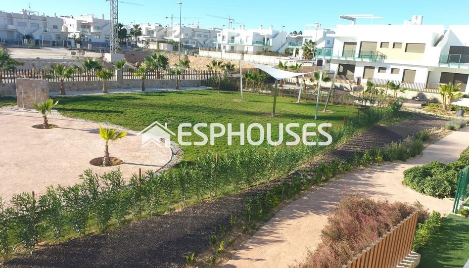 Modernos y amplios apartamentos de 2 y 3 dormitorios con 2 baños tanto en planta baja con terraza y jardín como en primera planta con terraza y solárium. Vistabella Golf debería considerarse más como un pequeño Pueblo con todos los servicios como cajero automático, supermercado, varios bares y restaurantes, farmacia.... con la ventaja de que es una zona totalmente segura con 1 entrada y salida a través de un puesto de seguridad donde La matrícula de cada automóvil se registra electrónicamente. Los costes de seguridad corren íntegramente a cargo de Vistabella Golf y del propio promotor. Desde aquí hay una conexión fija de autobús todos los jueves entre Vistabella y La Zenia Shopping Boulevard. Desde Vistabella Golf se puede llegar a todas las localidades costeras de Orihuela Costa en 15 minutos en coche. A Vistabella se puede llegar desde el aeropuerto de Alicante por la autopista (gratuita) en sólo 30 minutos en coche.\nVistabella se encuentra entre Los Montesinos y San Miguel de Salinas. Está a menos de 30 minutos en coche del aeropuerto de Alicante. El Vistabella Golf Resort del mismo nombre está cerca, con edificios de apartamentos y villas. Todos estos están en el lugar y se controlan las 24 horas del día, los 7 días de la semana, los 7 días de la semana, al entrar o salir a través del puesto de seguridad, cada vehículo se registra electrónicamente, lo que contribuye a una sensación adicional de seguridad. Este campo de golf no se siente como la mayoría de los campos de golf, ya que uno atraviesa un pequeño pueblo antes de llegar al campo de golf. En este pueblo tienes todos los servicios a poca distancia como: bares, restaurantes, supermercado, cajero automático, farmacia, parada de autobús con conexión entre Orihuela y Torrevieja y próximamente un centro médico. Entre los edificios encontrará muchos parques con equipos de gimnasia, pistas de petanca y parques infantiles. En el campo de golf encontrará la casa club con canchas de pádel, bol inglés y, por supuesto, el campo de golf de 18 hoyos. Además, en el futuro se construiría allí una playa artificial. En definitiva, un pueblo que tiene mucho que ofrecer y que vale la pena invertir en una segunda residencia.
