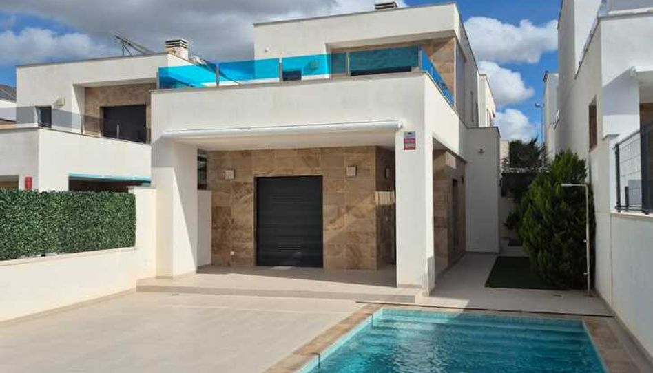 Presentamos este espectacular chalet independiente en una de las zonas residenciales más prometedoras de Bigastro (Alicante).Esta vivienda combina a la perfección diseño contemporáneo, eficiencia energética y tranquilidad natural, a tan solo 25 minutos de las playas del Mediterráneo y con excelente acceso a servicios y carreteras principales.Moderna, con 3 dormitorios y 3 baños, ubicada en el pintoresco pueblo de Bigastro, con impresionantes vistas a la montaña y a tan solo 25 minutos en coche de la hermosa costa mediterránea. Perfecta como primera o segunda residencia, esta casa está equipada con todo lo necesario para disfrutar del máximo confort en un entorno privilegiado. Construida en 2023, esta vivienda contemporánea combina a la perfección diseño vanguardista, comodidad para el día a día y una eficiencia energética excepcional. Con una generosa superficie habitable de 144 m², la villa cuenta con tres espaciosas habitaciones dobles y dos elegantes baños en suite totalmente equipados.En el corazón de la vivienda se encuentra una elegante cocina americana, equipada con electrodomésticos, conectada a la perfección con el amplio y luminoso salón, perfecto tanto para el entretenimiento como para el relax.Con un dormitorio y un baño completo en la planta baja, esta podría ser la casa de sus sueños.Disfrute de su piscina privada. El jardín, de fácil mantenimiento, tiene una superficie de 246 m² y una piscina de 7,5 m x 3 m.Calefacción solar para agua caliente.Seguridad:Todas las ventanas principales cuentan con persianas eléctricas de seguridad.Cocina: Hecha a medida con electrodomésticos.Ubicada en un entorno tranquilo y verde, rodeada de huertos y pintorescos senderos, la villa ofrece un estilo de vida sereno sin sacrificar la comodidad. Todos los servicios esenciales están a un corto trayecto en coche. Bigastro se está consolidando como una ciudad en auge con mucho que ofrecer, con nuevos parques para niños y una gran variedad de actividades para adultos, además de numerosas actividades recreativas, como Vistabella Golf y La Finca a solo 15 minutos, pistas de pádel interiores y exteriores para los amantes del deporte, y muchas más instalaciones deportivas y de fitness.La casa se encuentra en una zona con magníficas vistas a la Sierra de la Vega Baja, con todos los servicios a su alcance en Bigastro y Orihuela, y a solo 25 minutos de las playas de Orihuela Costa y Torrevieja en la Costa Blanca. Orihuela está a menos de 10 minutos y, con el tren de alta velocidad, Madrid está a solo 2,5 horas. El aeropuerto de Alicante está a solo 40 minutos en coche.