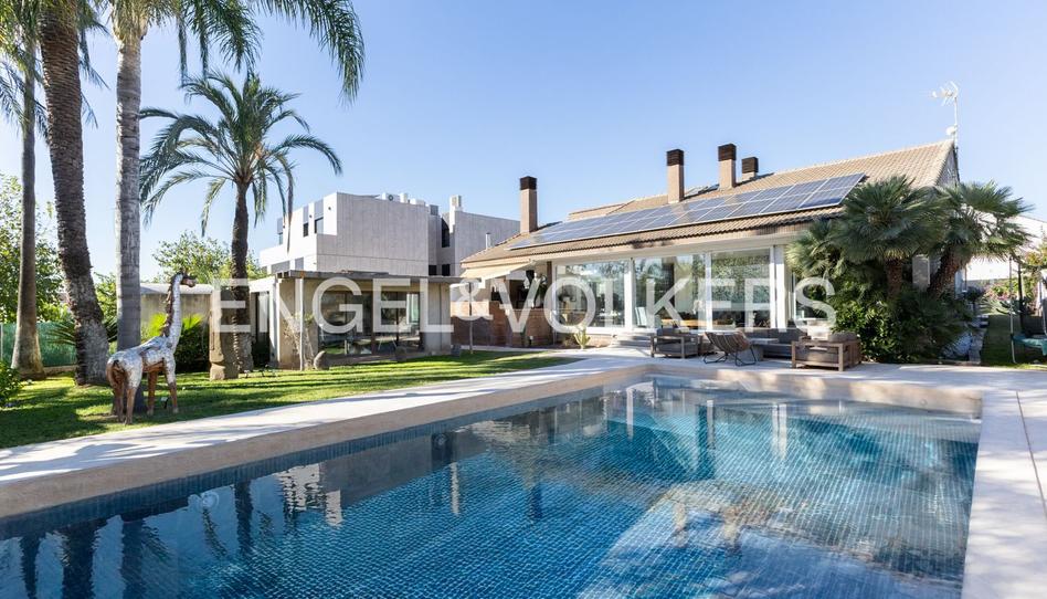 Esta vivienda única combina tradición, modernidad e inspiración artística en todas sus estancias con todo lujo de detalles que debe contar una propiedad de alto standing. La propiedad se distribuye en tres zonas bien diferenciadas, la planta principal o zona noble de la casa, con la espectacular suite con salida al jardín, su vestidor y su baño, sus salones, la cocina y tres dormitorios para la familia, todo ello con acceso al jardín y a su piscina de grandes dimensiones, además cuenta con una zona de barbacoa exterior cubierta acompañada de parte de la terraza con mobiliario de obra para disfrutar de grandes momentos. La propiedad evoluciona desde ornamentos tradicionales como su gran cocina con vigas de madera de pino viejo vistas en parte de la casa o su exclusiva bodega, con elementos antiguos y mecanismos modernos para la correcta conservación del vino a materiales modernos y sistemas de última generación como sus cerramientos o parte de sus suelos de cristal. Cuenta además, con una zona de invitados, en la primera planta, en la que hay una suite completa y, además, dos dormitorios más con un baño. Finalmente, encontramos en su sótano, la zona de ocio, con la bodega y una sala de cinema home, hacer mención a su jardín consolidado y su piscina de grandes dimensiones que facilita cualquier actividad acuática deportiva. Está situada en una urbanización muy próxima a la ciudad de Valencia, con control de acceso y vigilancia privada horas