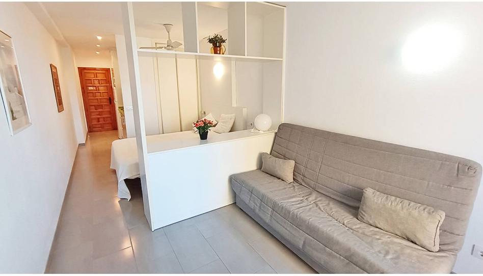 Estudio de 29 m2, 1 baño, salón, cocina americana, terraza, completamente amueblado y equipado, ventanas de aluminio con doble cristal, piscina y jardín comunitario, pista de tenis, zona infantil, edificio en primera línea con ascensor, reformado, en la playa.