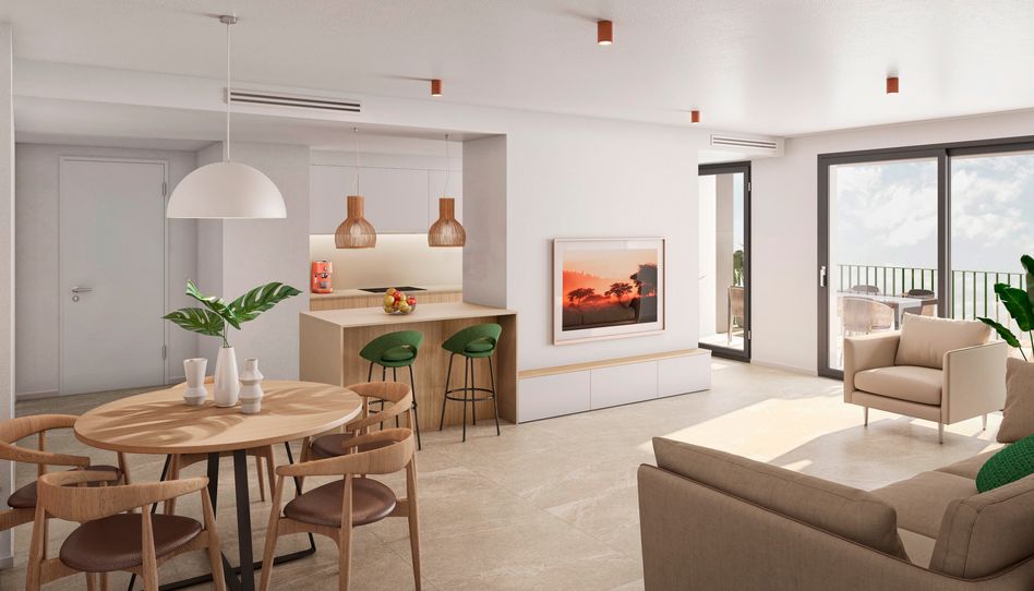 Unifamiliar Sant Jordi ha diseñado viviendas de 4 y 5 habitaciones, un salón comedor diáfano con cocina abierta de diseño, lavadero y amplias terrazas privadas, donde se accede directamente desde la zona de día.