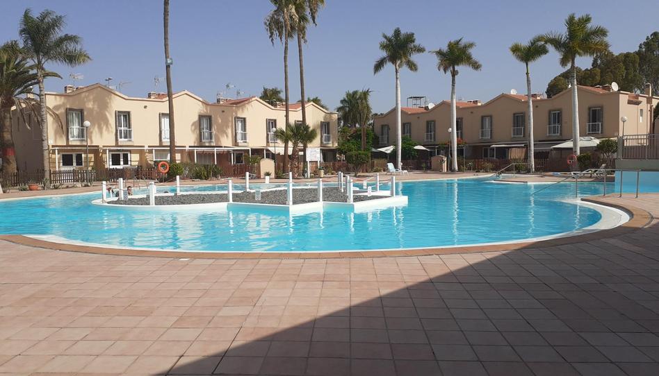 Bonito bungalow en Campo Internacional-n¡Descubre este encantador bungalow tipo dúplex en el corazón del Campo Internacional de Maspalomas! Con un diseño acogedor y funcional, esta propiedad de 46m² construidos ofrece un salón-cocina luminoso, ideal para disfrutar de momentos en familia. En la planta baja, encontrarás un trastero práctico que se puede volver a convertir en aseo y un jardín privado que te permitirá relajarte al aire libre. La terraza es perfecta para disfrutar del clima canario...Subiendo a la planta alta, se ubica un dormitorio acogedor con armarios empotrados y un baño completo con ducha, brindando comodidad y privacidad. Este complejo tranquilo cuenta con amplias zonas comunes y una bonita piscina comunitaria, perfecta para refrescarse en los días soleados. Además, se vende completamente amueblado, lo que facilita la mudanza...No dejes pasar la oportunidad de vivir en un entorno sereno y bien conectado. Con una terraza de 15 m² y en buen estado, este bungalow es ideal tanto para residir como para inversión. ¡Ven a visitarlo y enamórate de tu nuevo hogar en Maspalomas!..