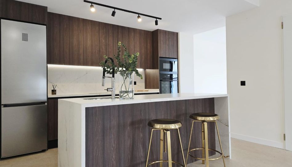 * Cocina de Revista: Diseño americano con isla central, encimeras porcelánicas y electrodomésticos de primeras marcas incluidos.