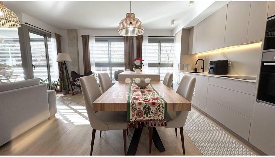 Volpelleres - Encantadora y luminosa planta baja esquinera a tres vientos, de 91 m2 construidos. Ligeramente elevada del nivel de la calle, este inmueble se encuentra en una zona privilegiada por su entorno y su orientación Este-Sur-Oeste. Consta de Salón Comedor abierto a la cocina con isla central y salida a una terraza de unos 7 m2. En el reportaje fotográfico se muestra otra sugerencia de distribución distinta. La amplitud de esta zona, nos permite tener encuentros familares numerosos.
