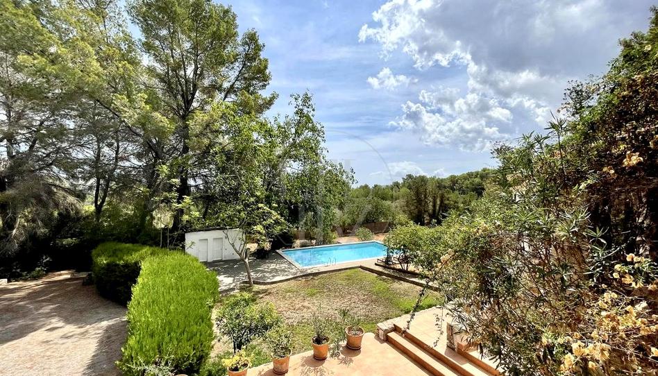 En el exterior, la finca cuenta con una piscina con baño y vestidor, varias terrazas y porches cubiertos, así como amplios jardines con árboles frutales que refuerzan el estilo de vida mediterráneo. El entorno, rodeado de vegetación autóctona, garantiza privacidad y un ambiente ideal para el descanso.