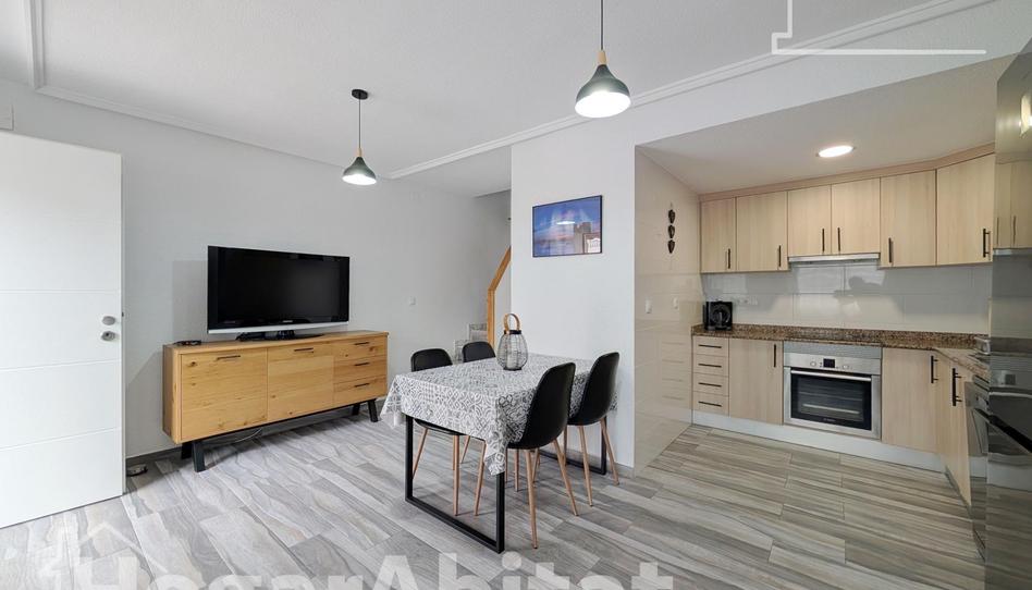 Si sueñas con vivir junto al mar, en un entorno residencial de lujo con todas las comodidades modernas, este hogar es para ti. Ponemos a tu disposición esta bellísima casa de dos alturas, muy luminosa y reformada con materiales y acabados de excelente calidad, situada en la exclusiva zona de la Gran Playa en Santa Pola. La planta baja consta de una amplia terraza de 25 m2 en la entrada, conectada con un luminoso y confortable salón-comedor, una cocina americana y equipada, y un aseo de cortesía. La primera planta ofrece dos dormitorios dobles, uno con salida a un balcón, y un baño completo con ducha. La propiedad se vende totalmente amueblada, lista para que te instales. Plaza de garaje incluida en el precio. Cuenta con calidades como armarios empotrados, aire acondicionado por splits con bomba frío/calor, ventanas de climalit, puertas de PVC y suelo de tarima flotante. Este residencial está situado en una de las mejores playas de Santa Pola, a escasos metros del mar, y bien comunicado por la Av. de Vicente Blasco Ibáñez y la Av. de la Virgen del Pilar, facilitando el acceso a todo tipo de servicios. No pierdas la oportunidad de vivir en este maravilloso entorno. Contáctanos para más información y para organizar una visita.