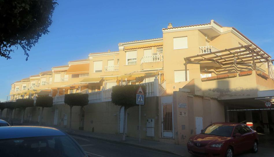 Dúplex de segunda mano en venta situado en Santa Pola, Alicante. Cuenta con una superficie de 118 m² distribuidos en planta baja de vestíbulo con escalera, salón-comedor, cocina, 1 dormitorio, aseo, patio-jardín y la planta alta se distribuye en 3 dormitorios y 2 baños, uno privado al dormitorio principal, paso y balcón. Se localiza en la planta baja y en sus inmediaciones dispone de todo tipo de servicios alrededor. Tiene buena comunicación tanto por transporte público como por transporte privado.