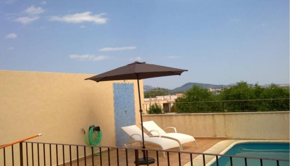 Chalet Adosado en perfecto estado de conservación, con magnificas vistas a la Sierra de Tramuntana y a lo lejos hacia la Bahia de Alcudia. Dispone de tres plantas. En la planta sotano encontramos: coladuria, garage con parking, aseo y una gran habitacion multiusos. En la planta baja podemos encontrar una habitacion doble, un baño, una cocina abierta y una acogedora sala comedor conectada a una terraza con piscina propia. En la planta piso hay tres habitaciones dobles y un baño.