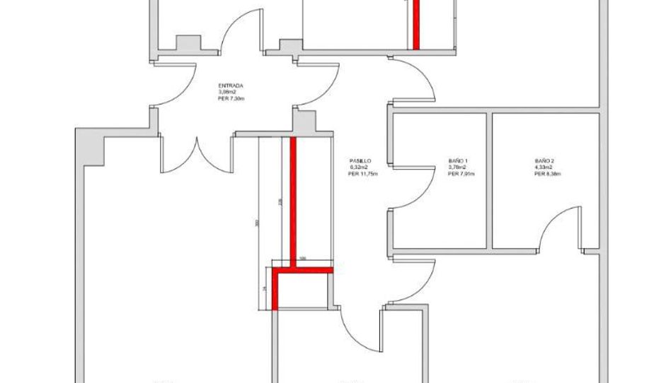 Dispone de 2 baños completos, uno de ellos reformado y el segundo en suite en el dormitorio principal. Dispone de armarios empotrados en el pasillo/distribuidor y en los 2 dormitorios secundarios. Tiene zona de lavadero, gas natural y aire centralizado frío/calor.