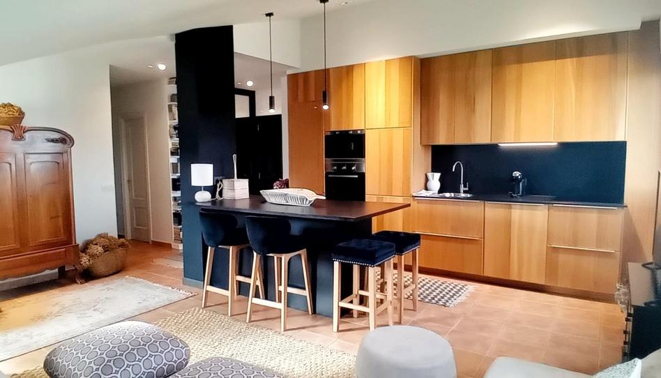 - Amplio salón con cocina americana, totalmente equipada con electrodomésticos panelados, isla y una elegante combinación de madera natural y tonos oscuros.