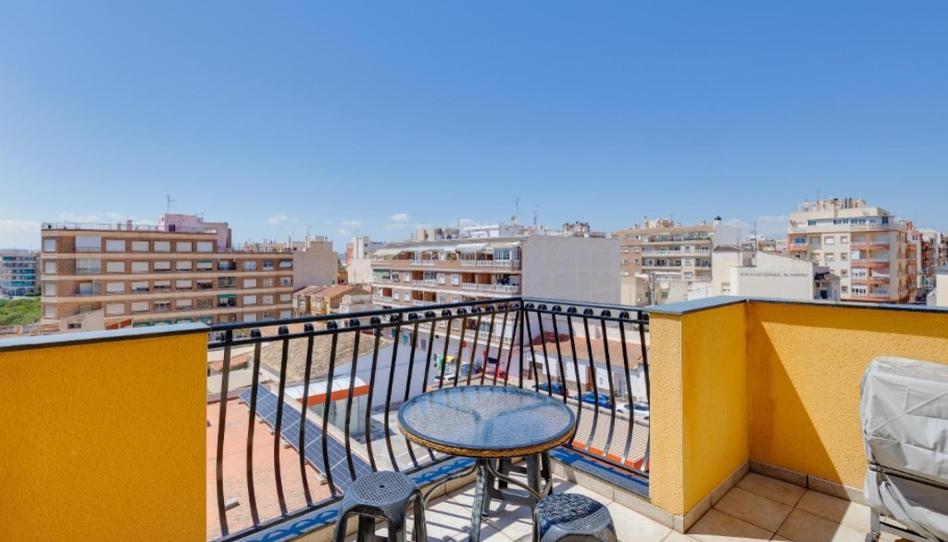Luminoso ático a solo 300 metros del mar en Torrevieja - Disfruta del estilo de vida mediterráneo. Presentamos este magnífico ático situado en la cuarta y última planta de un moderno edificio con ascensor, a tan solo 300 metros de las aguas cristalinas del Mediterráneo. Una joya inmobiliaria que combina ubicación, luz natural y confort, ideal tanto como residencia permanente como inversión para alquileres vacacionales. Con una superficie construida de 64 m², esta acogedora vivienda ofrece un espacio bien distribuido que incluye dos dormitorios con armarios empotrados, un baño completo y un luminoso salón-comedor con acceso directo a una amplia y soleada terraza privada de 8 m². Desde esta terraza orientada al sureste, puede disfrutar del sol casi todo el día, lo que la convierte en el lugar perfecto para desayunos al aire libre, relajarse con un buen libro o simplemente tomar la brisa del mar. El ático se vende completamente amueblado y equipado, listo para entrar a vivir sin necesidad de reformas. La cocina está integrada funcionalmente en el espacio, y el ambiente general de la propiedad transmite paz, luz y amplitud gracias a su orientación y ubicación privilegiada en la planta alta, lo que garantiza tranquilidad, ventilación natural y privacidad. Construido en 2005, el edificio cuenta con acabados de buena calidad, que incluyen una puerta de entrada de seguridad y aire acondicionado con bomba de calor, lo que garantiza el confort durante todo el año. Este ático representa una oportunidad única para aquellos que buscan una vivienda junto al mar, con todos los servicios cerca (supermercados, transporte público, restaurantes, zonas de ocio), y el encanto de vivir a un paso de la playa en una de las localidades más queridas de la Costa Blanca.