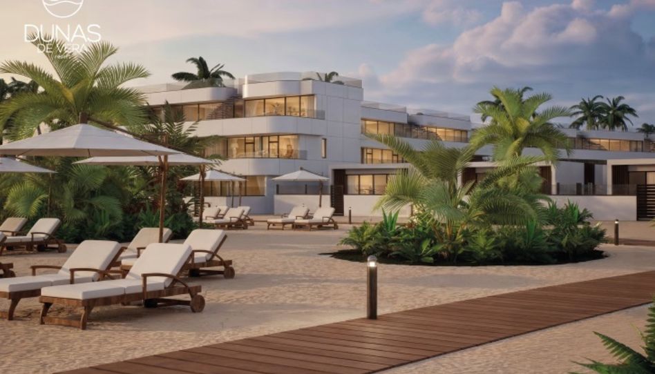 “Dunas de Vera” es una promoción de nueva construcción de apartamentos turísticos. Se construirán unas 200 unidades con las siguientes tipologías: Apartamentos de 1 Dormitorio, Apartamentos de 2 Dormitorios y Villas de 2 Dormitorios con jardín y piscina independientes.
