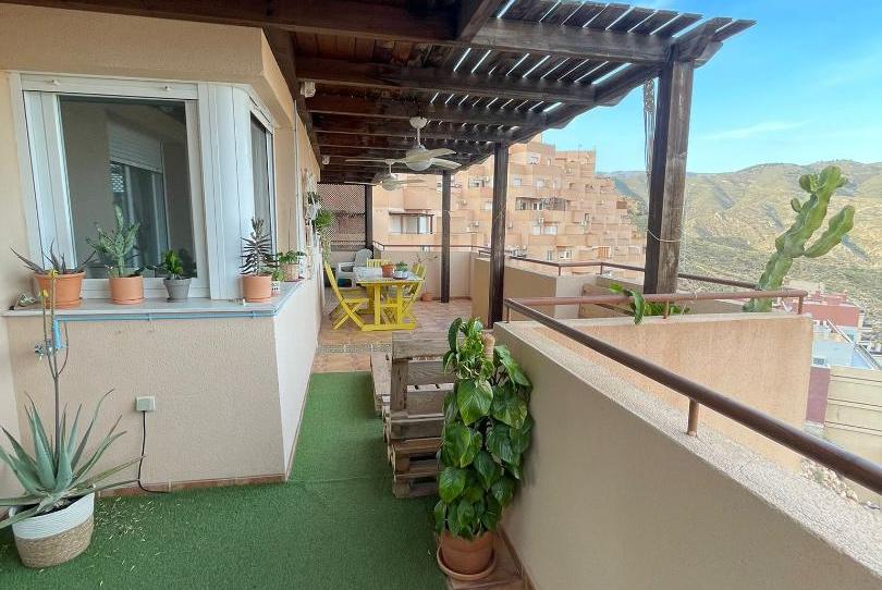 ¡ EN VENTA! 2 PISOS UNIDOS FÍSICAMENTE, PLAZA DE GARAJE Y 2 TRASTEROS en el mismo edificio, Con posibildiad de revertir al estado inicial y disponer de dos viviendas. No inmobiliarias por favor. Reformado con 2 Habitaciones, 2 baños (uno de ellos aseo con armario lavandería y almacenaje) 2 termos independientes, 1 de 100litros en el baño principal y otro de 50l. Vestíbulo con pintura mural única hecha por artista local. Cocina con lavaplatos, horno y agua por osmosis, vitrocerámica de 3 fuegos, fregadero doble y frigorífico combi grande, encimera de mármol blanco de Macael. Salón - comedor con salida a la terraza de 34m2 útiles cubierta por Pérgola de madera, 2 puntos de agua e instalación para ventiladores en el techo. Vistas panorámicas a la Bahía de Aguadulce y la montaña. La habitación principal dispone de dos zonas de vestidor diferenciadas y una zona de trabajo para un pequeño despacho. Salida a la terraza directa. Habitación secundaria con dos ventanas, papel pintado y puerta corredero que ahorra espacio. Espacio para dos camas, estantería y armario de 1,50. La vivienda dispone de 2 TRASTEROS y 1 PLAZA DE GARAJE, en el mismo edificio. Trasteros de 2,15m2 útiles cada uno y la plaza de garaje con 15m2 útiles, de fácil entrada y salida del garaje. Edificio con dos accesos por dos calles diferentes y jacuzzi en la última planta del edificio, con impresionantes vistas.