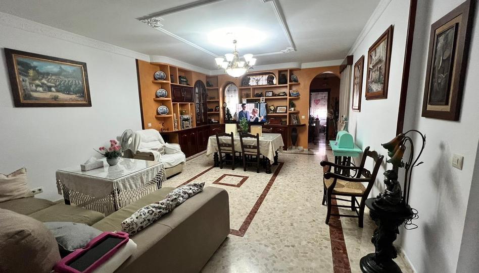 Salón-Comedor amplio, espacioso y muy luminoso con ventana de madera hacia la cocina, el mueble del salón esta echo de estuco.