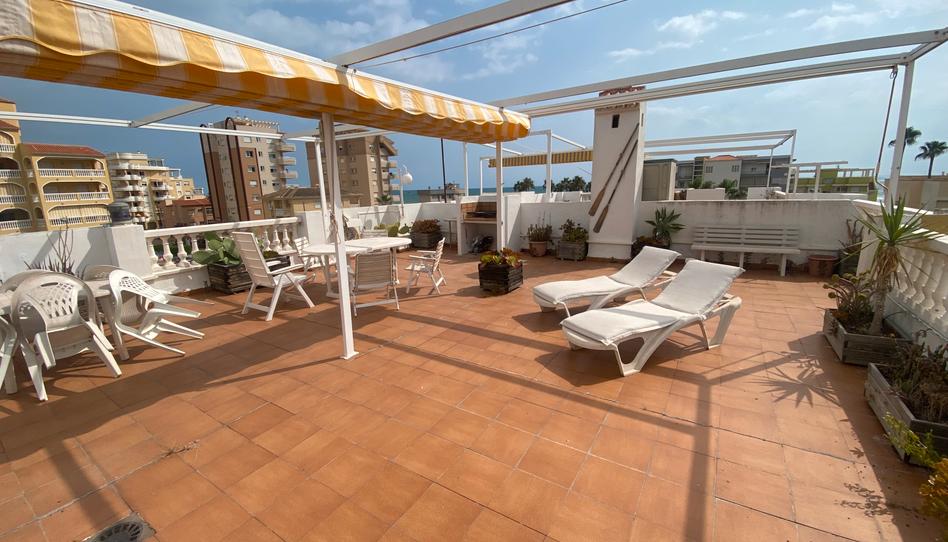 Apartamento ático situado en segunda planta (sin ascensor), con tres dormitorios, dos baños, cocina independiente, zona comedor y salón con salida a terraza en planta de orientación Sur (con toldos), desde la cual por una escaleras se accede a la terraza superior de uso privado de 60 m2 amueblada con zona comedor y toldo palillero. Incluye plaza de aparcamiento cubierta