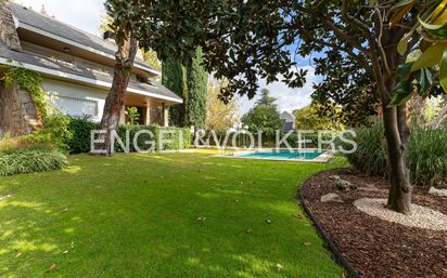 Engel & Völkers les presenta esta villa de excepcionales dimensiones en Conde de Orgaz, con 699 m² construidos y distribuidos en dos amplias plantas y bajo rasante. Rodeada de una parcela plana y ajardinada con pinos centenarios y vegetación consolidada, esta impresionante propiedad nos ofrece un elegante porche con barbacoa de obra y vistas inmejorables sobre el jardín y la piscina de gran tamaño. Sin duda, esta villa es un paraíso de privacidad en el Centro de Conde de Orgaz. Todas las estancias son amplias y cómodas. La puerta principal se encuentra en el frontal de la vivienda, dándole prestigio y realzando la entrada. La casa cuenta con un representativo hall con doble altura de techos y amplia escalera. En la planta baja encontramos un despacho o habitación de invitados, un aseo, un salón con chimenea y un amplio comedor, proyectado para reuniones familiares o recepciones. El salón comunica con un amplio porche donde se encuentra un salón exterior y un comedor, además de la barbacoa. La cocina está equipada con isla central, comedor de diario, zona de almacenaje, despensa y zona independiente de lavado y plancha, además de una habitación de servicio con baño completo. La primera planta cuenta con 5 amplios dormitorios, destacando la suite principal con dos vestidores, zona de lectura y baño doble con bañera y cómoda cabina de ducha, además de amplia zona de tocador en la entrada al baño. Todas las habitaciones son muy amplias y disponen de grandes armarios. La propiedad se completa con garaje para 4 o 5 vehículos, sala de juegos o salón social con luz natural, amplio gimnasio, vestuarios, trastero y bodega. Engel & Völkers les ofrece esta vivienda situada en pleno Parque Conde Orgaz, reconocida zona residencial de gran prestigio elegida por numerosos embajadores de varios países e importantes directivos de empresas para ubicar sus residencias. El barrio de Conde de Orgaz está localizado muy cerca del centro de la ciudad de Madrid y dispone en sus alrededores de todos los servicios necesarios: metro, líneas de autobuses, excelentes centros educativos e importantes zonas comerciales y de ocio, así como centros sanitarios de reconocido prestigio. La zona también cuenta con varios espacios deportivos comunes, lo que supone una gran ventaja para todos aquellos que disfruten haciendo deporte. Además, Conde de Orgaz posee fácil acceso a las principales vías de comunicación, lo que le hace muy accesible a cualquier lugar de la capital madrileña. En sus cercanías podemos encontrar el aeropuerto internacional Adolfo Suárez y los recintos feriales de IFEMA. Conde de Orgaz está catalogado como uno de los mejores barrios de Madrid, destacando por su tranquilidad al tratarse de una zona sin locales de ocio en sus cercanías, además de ofrecer a sus residentes numerosos espacios verdes en los que poder disfrutar de relajantes paseos en familia y al aire libre.