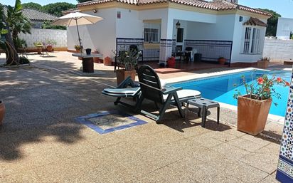 ¡Oportunidad única en Chiclana! Presentamos un maravilloso chalet en la exclusiva zona de Rana Verde, ideal para quienes buscan confort y tranquilidad cerca de la playa. Este encantador inmueble cuenta con 3 dormitorios espaciosos y 2 baños completos, perfectos para toda la familia. Disfruta del verano en tu piscina privada de 8x4 metros, perfecta para relajarte y divertirte. La propiedad está muy bien ubicada, cerca de zonas comerciales y de ocio, y a solo 3,5 km de la famosa playa de La Barrosa. No pierdas la oportunidad de vivir en un entorno privilegiado. ¡Contáctanos para más información y agenda tu visita!