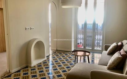 En pleno centro de Valencia, junto a la calle Jativa, La Estación del Norte, Plaza de España y Plaza del Ayuntamiento, muy bien comunicado con transporte publico. Tiene 91m2 s.c y 79 construidos. Se distribuye en cocina abierta con isla y todos los electrodomésticos, 2 dormitorios con armarios empotrados, 2 baños completos (uno en suite). AA frio calor por conductos. Carpinteria exterior PVC blanco con climalit. Pavimento original de Nolla perfectamente tratado y parquet. 2 balcones a la calle.