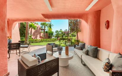 Este apartamento de planta baja totalmente renovado con 3 dormitorios y 3 baños se encuentra en el prestigioso y codiciado complejo Torre Bermeja en la Nueva Milla de Oro, Estepona. Ofrece un estilo de vida refinado con interiores modernos y elegantes, rodeado de exuberantes jardines tropicales y con acceso directo a la playa. Con una superficie construida total de 142 m2 y una amplia terraza privada de 60 m2, este apartamento ofrece un abundante espacio habitable, perfecto para relajarse y disfrutar de la vida al aire libre. El interior está meticulosamente diseñado, con hermosos suelos, una cocina de diseño completamente nueva equipada con electrodomésticos Miele, un sistema de sonido Bang & Olufsen, armarios empotrados a medida y una chimenea eléctrica para mayor confort y ambiente. El apartamento se encuentra en la exclusiva Torre Bermeja, un complejo de alta calidad y seguro frente al mar, conocido por sus hermosos jardines maduros y sus excepcionales instalaciones. El complejo ofrece seguridad las 24 horas, dos piscinas al aire libre, dos gimnasios totalmente equipados, una piscina cubierta climatizada y dos saunas. La tranquila ubicación frente al mar proporciona acceso directo a la playa y al paseo marítimo adyacente, ideal para paseos relajados junto al mar. Además, varios restaurantes de alta calidad están a poca distancia a pie, donde podrá disfrutar de la cocina local. La zona de Torre Bermeja es conocida por su lujo y privacidad, estando aún cerca del vibrante centro de Estepona, con su encantador casco antiguo, boutiques y acogedores bares de tapas. El apartamento incluye una plaza de aparcamiento subterránea conveniente y un trastero independiente. Torre Bermeja no solo ofrece un estilo de vida exclusivo, sino también una excelente ubicación, con fácil acceso a la autopista A7, lo que hace que tanto Marbella como Puerto Banús estén a solo unos minutos. La casa perfecta para aquellos que buscan lujo refinado en la hermosa Costa del Sol. ¡Permítanos guiarlo en el descubrimiento de esta hermosa propiedad!
