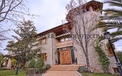 Singular mansión de piedra en Monte Rozas. Moderno al estilo clásico, estamos ante un chalet independiente de 900 m2 construidos en parcela de 1.250 metros. Grandes ventanales y bonita vidrieras, amplios espacios, techos altos y bonitas vistas, tiene 8 dormitorios, 6 de ellos en suite con baño y algunos con vestidor. Tiene 9 baños completos y 1 aseo. Distribuido en 2 plantas más semisótano y torreón, en planta baja está el hall de entrada, 1 dormitorio en suite, 1 aseo de invitados, cocina office con salida al exterior, salón principal de unos 60 m2 con chimenea comunicado con la zona de spa con piscina climatizada y jacuzzi con salida al jardín. El spa comunica también con la suite principal, con bañera en el dormitorio, baño completo y vestidor y salida al jardín. En la planta alta hay una sala de estar que mira al salón principal y 2 dormitorios en suite, uno de ellos con terraza. Hay otro dormitorio más de gran tamaño con vestidor y 2 baños completos. Desde una de las suites se sube al torreón donde hay una habitación con impresionantes vistas panorámicas del entorno. En semisótano hay 2 garajes para 5 coches, cuarto de calderas, gimnasio, lavandería, 1 dormitorio y 1 baño completo, sala de masaje y apartamento de servicio (cocina, sala de estar, dormitorio y baño). La casa tiene ascensor. Exteriores: jardín con riego automático, cenador con calentadores, barbacoa, estanque con peces y bonita arboleda e iluminación.