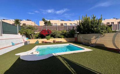ALARCON PROPIEDADES presenta una magnifica casa pareada esquinera, a tres vientos, con gran jardín y piscina privados, situada en la urbanización Fond Sumella, en la ciudad de Vilanova i la Geltrú, a 35 minutos del aeropuerto del Prat, Barcelona. La casa se distribuye en planta sótano, planta baja y planta piso y cuenta con una superficie total de 176 m² , 85 m2 útiles, con el uso y disfrute del jardín de 250 m². La vivienda dispone de 3 habitaciones, 2 de ellas dobles y 1 individual, más una habitación en planta sótano, 2 baños, cocina, comedor, garaje para 1 coche, jardín propio, piscina (a reparar), terraza y muchas más comodidades. Con una antigüedad del año de edificación 2009 esta casa se encuentra en buen estado de conservación y es muy soleada gracias a su orientación. Además, su ubicación en una zona urbanizada dan un toque de modernidad. La ubicación en el distrito de Fond Somella ofrece un entorno tranquilo y natural, con buenas comunicaciones que conectan fácilmente con Barcelona y otros municipios costeros. La vivienda está dotada de placas solares para agua sanitaria, osmosis, descalcificador, preinstalación de aire acondicionado, piscina prefabricada (pendiente de reparación, consultar...). ¡No pierda la oportunidad de vivir en este enclave privilegiado! El precio no incluye impuestos (ITP) ni gastos de Notaría y Registro.