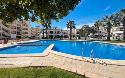 P-1588 Ático con vistas al mar en Jumilla III – 2 dormitorios, 2 baños y piscina comunitaria Descubre este espectacular ático en la prestigiosa urbanización Jumilla III, una bonita comunidad cerrada con piscina, zonas ajardinadas y aparcamiento dentro de la comunidad cerrada. Además, existe la posibilidad de adquirir una plaza de garaje subterráneo por 7.000€ adicionales. Ubicado a pocos minutos de las playas de Orihuela Costa, este ático ofrece una ubicación inmejorable, rodeado de campos de golf, restaurantes, supermercados y todos los servicios necesarios a pie. La vivienda cuenta con 2 amplios dormitorios, 2 baños completos (uno de ellos en suite), una cocina semiabierta totalmente equipada con barra y ventana al exterior, y un luminoso salón-comedor con acceso directo a una terraza privada con preciosas vistas al mar. Situado en la última planta del edificio, este ático garantiza privacidad, tranquilidad y unas vistas despejadas tanto al mar como a las zonas comunes. La urbanización destaca por su entorno cuidado y agradable, con piscina comunitaria, jardines perfectamente mantenidos y zonas de aparcamiento dentro del complejo. Una opción ideal tanto para vivir todo el año como para disfrutar de unas vacaciones en la Costa Blanca.