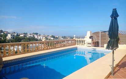 Villa en DENIA MARQUESA, con 217 m² construidos, 800 m² metros de parcela, 4 dormitorios, 4 baños, buen estado, 1 armarios, cocina americana, trastero, 3 plantas del edificio, aire acondicionado frío/calor. Este Chalet se encunetra en una buena zona residencial de Denia con muy buenas vistas al mar y panoramicas. Se destribuye en tres pantas , con amplio salon/ comedor con salida a una terraza acristalada donde se aprecia las vistas . La cocina es abierta y estar equipada, 4 dormitorios con armarios empotrados , 4 baños dos de ellos on suite , 1 aseo. Apartamento de invitados con acceso des de la casa. Piscina climatizada por placas solar, jardin de facil mantenimiento. Sala de juego y 3 trasteros , la casa se encuentra en perfecto estado