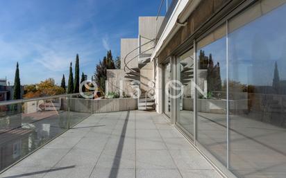 Olisson Club presenta este fantástico ático dúplex de 250 metros con terrazas y dos piscinas en El Viso. Al acceder a la vivienda encontramos una amplia estancia de salón-comedor con pared de cristal a tres fachadas y salida directa a una gran terraza. En esta planta se encuentra además una cocina de diseño, totalmente equipada con los electrodomésticos integrados y abierta al área de comedor. Asimismo, cuenta con un aseo de cortesía y zona de lavandería con lavadora y secadora. En la planta baja encontramos un hall con armario gabanero, cuatro dormitorios, dos de ellos con baño en suite y otros dos con cuarto de baño exterior compartido. El dormitorio principal tiene un gran vestidor y un cuarto de baño de mármol travertino con doble lavabo, bañera hidromasaje y zona de ducha. Todos los dormitorios cuentan con su propia terraza privada, amplios armarios empotrados y reguladores de temperatura (frio/calor) independizados para el aire acondicionado. Por último, desde la terraza del salón se accede, a través de unas escaleras exteriores, a una piscina privada con terraza y unas vistas panorámicas de todo Madrid. La vivienda dispone de aerotermia con regulador digital independizado en todas las habitaciones y con todas las persianas motorizadas. Cuenta con un amplio trastero y cuatro plazas de garaje, una de ellas con cargador para coches eléctricos. La finca dispone de una piscina comunitaria tranquila, sistema de seguridad y vigilancia con cámaras periféricas, en el interior y en garaje y zonas comunes. También dispone de un magnífico servicio de conserjería todos los días de la semana. La localización es excelente, ya que la vivienda se ubica dentro de la tranquila Colonia El Viso pero a escasos minutos de avenidas principales. Se trata de un oasis en pleno centro de la ciudad que cuenta con todo tipo de servicios en los alrededores como son colegios, universidades, centros comerciales, supermercados, centros de salud, hospitales, zonas verdes, recintos deportivos, así como una gran selección de los mejores bares y restaurantes de Madrid. La comunicación también es ideal, con rápido acceso a las principales arterias de la ciudad, y numerosas líneas de autobús y metro a escasos metros de la vivienda. [IW]