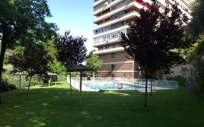 **¡ESTUPENDO PISO CON TERRAZA PERIMETRAL, VISTAS HASTA LA SIERRA Y MAGNÍFICAS ZONAS COMUNES CERCA DE LA CALLE ARTURO SORIA!** Disfrutar de un espléndido jardín muy cuidado, consolidado y verde junto a una magnífica piscina no es incompatible con tener el Metro literalmente en la puerta de casa. Así es la combinación perfecta que ofrece este inmueble y que lo hace una opción ideal para vivir y como inversión. Es muy luminoso gracias a su altura en la octava planta, a que es totalmente exterior haciendo esquina, a su doble orientación norte y oeste, y a su terraza perimetral que rodea toda la vivienda. Actualmente se distribuye en cuatro habitaciones, la principal con baño en suite y todas con armarios empotrados, tres cuartos de baño, un amplio salón comedor con salida a la terraza, una buena cocina independiente con terraza tendedero y un hall recibidor. Los planos en tres dimensiones de este anuncio ofrecen la recreación en 3D de una posible reforma. Además, cuenta con una plaza de garaje en el sótano del edificio con acceso directo a través del ascensor y con un trastero en la planta ático. La calefacción es central de gas con contadores individuales y tiene aire acondicionado en una de las habitaciones. El piso tiene 153m² construidos según catastro, de los que 144m² son vivienda y 9m² son elementos comunes. En el Registro de la Propiedad consta una superficie aproximada de 142,72m². Además de servicio de conserjería, cuenta con vigilancia 24 horas y ofrece unas agradables zonas comunes ajardinadas, una piscina estupenda recién arreglada, zona infantil con columpios y una cancha multideporte. La ubicación de esta casa en el distrito de San Juan Bautista es magnífica: muy cerca de Arturo Soria y del Parque Félix Rodríguez de la Fuente, y rodeada de todos los comercios y servicios necesarios. Está muy bien comunicada gracias a que tiene en la puerta de la urbanización la estación de Metro de Avenida de la Paz (línea 4), cerca varias paradas de autobuses urbanos (9, 53, 72, 73, 120, N2) y un acceso inmediato a la M30. **NO COBRAMOS HONORARIOS AL COMPRADOR** *Este anuncio se muestra a título informativo, no es contractual ni vinculante y puede contener errores*