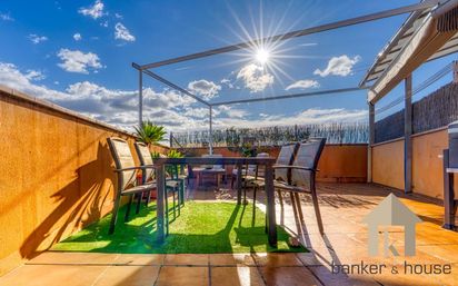 Dúplex–ático con una terraza privada de más de 40 m² y vistas abiertas sobre el horizonte del centro de Sabadell y el Parque Natural de Sant Llorenç del Munt i l'Obac . La planta principal organiza la zona de día en un salón comedor amplio, pavimento de parquet y salida directa a un balcón corrido donde cabe una pequeña mesa con sillas, ideal para abrir las puertas y extender el espacio hacia el exterior. En esta misma planta se encuentra la cocina, alargada y muy aprovechada, con gran superficie de encimera, abundante almacenaje en ambas paredes y salida a una práctica galería exterior que resuelve la zona de lavado y caldera sin restar metros al interior. La planta inferior se completa con una habitación doble con armario empotrado y salida al balcon, una habitacion individual y un baño completo con bañera. Las estancias mantienen el mismo pavimento de madera, lo que aporta continuidad y sensación de calidez, y se adaptan fácilmente a uso infantil, despacho o habitación de invitados, con un distribuidor cómodo que evita pasillos innecesarios. En la planta superior se abre la suite principal, un dormitorio de buen tamaño con armario empotrado y baño integrado, separado por un tabique de pavés que permite la entrada de luz natural. El baño incorpora plato de ducha, mueble de almacenaje en vertical y radiador toallero. Desde la suite se accede directamente a la gran terraza solárium, el espacio protagonista del piso: zona de comedor al aire libre, rincón chill-out con sofás, área de tumbona y jardineras perimetrales que aportan verde y privacidad. La altura del piso y la ausencia de edificios inmediatos por encima ofrecen una perspectiva panorámica de Sabadell y de las montañas del entorno, con sol durante gran parte del día. El conjunto se completa con carpintería exterior de aluminio, calefacción por radiadores y equipo de aire acondicionado en el salón y la planta superior, lo que asegura confort en todas las estaciones. Un ático pensado para quienes buscan vivir en el centro, con metros exteriores reales para disfrutar del buen tiempo y una distribución que permite diferenciar muy bien la vida diaria de la zona de descanso. Se encuentra ubicado en Centro a solo 200 metros de la Estacio FGC Can Feu, 50m de la parada de autobuses, 500m hasta la Rambla, acceso a través de las principales carreteras y buenas comunicaciones por transporte público. Proximidad a colegios, supermercados, cap salud y todos los servicios.