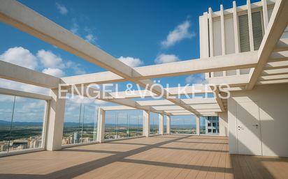 Presentamos esta singular propiedad de 156 metros cuadrados con solárium privado en azotea de 150 metros en la emblemática Torre IKON. Situada en la planta 29 con vistas despejadas, permite obtener una panorámica privilegiada de toda la ciudad. Al entrar a la propiedad nos recibe un elegante hall que da acceso a un gran salón comedor unos 50 m2 abierto a cocina de diseño equipada con electrodomésticos de alta gama. Toda el área social está rodeada por pared acristalada por la que se divisa el horizonte y atardeceres únicos y cuenta con una terraza de 14 metros a nivel del salon. La sorpresa nos espera arriba: desde el salon, ascendemos a una espectacular terraza solarium privada que goza de vistas inigualables con la ciudad a nuestros pies y se pierde en la interminable costa mediterránea hasta el cabo de la Nao. Además cuenta con un práctico aseo de cortesía. La zona de noche está formada por dos dormitorios dobles, un baño completo y por el dormitorio principal, con zona vestidor y baño en suite, todo ello con acceso a una terraza independiente de 5 m2. Suelo de Porcelanosa, cerramientos de rotura térmica, aire acondicionado por conductos, suelo radiante, persianas domotizadas y carpintería maciza son algunas de las características que dotan de calidades de primera a este espectacular inmueble. Además hay posibilidad de adquirir dos plazas de garaje (cada una 29.000 eur) y trastero (9000 eur). La torre IKON fue diseñada por el prestigioso arquitecto Ricardo Bofill y eso se aprecia en cada detalle. Un imponente hall con servicio de seguridad 24 horas da la bienvenida a los residentes del complejo, piscina sinfín con vistas al jardín Polifilo, área social con servicio de cocina, diferentes áreas de coworking, gimnasio con vestuarios equipado con grandes marcas deportivas, cuarto de bicicletas y ascensores con domótica. Sin duda, una gran oportunidad de adquirir una vivienda premium en la mejor zona de Valencia. Sant Pau es una de las zonas más demandadas y de vanguardia en la ciudad de Valencia. Estratégicamente ubicada por su fácil acceso tanto de salida como entrada a la ciudad, representa los valores de una ciudad cosmopolita y con proyección de futuro como es Valencia. Vivir en la avenida Cortes Valencianas es aparte muy cómodo, ya que cuenta con parada de metro y bus a escasos metros del edificio, cuenta con servicios como centros de salud, hospitales, colegios y supermercados, paradas de bus de colegios internacionales además de existir una amplia y variada oferta hostelera y de ocio con hoteles, restaurantes, palacio de Congresos, casino y a escasos metros del futuro estadio Nou Mestalla. El edificio situado justo en la entrada de la avenida, tiene la situación idónea para vivir en una zona dinámica, abierta y con vistas a futuro.