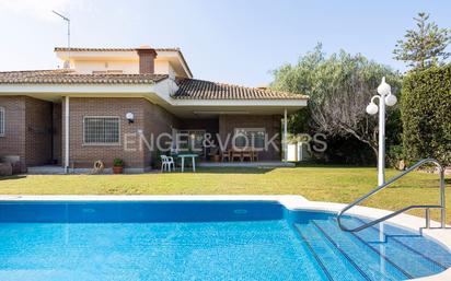Esta exclusiva propiedad combina el estilo clásico de los años 80 con una conservación impecable y materiales de máxima calidad. Una casa de lujo atemporal, cómoda y funcional, pensada para disfrutarla en familia durante todo el año. La vivienda destaca por su distribución práctica y cómoda, desarrollada casi en su totalidad en una sola planta. Dispone de cuatro amplios dormitorios y dos baños completos, uno de ellos en suite en el dormitorio principal. El salón-comedor, amplio y luminoso, ofrece un ambiente elegante y acogedor, con acceso directo a la zona exterior. La cocina, totalmente equipada, conecta con un lavadero independiente, aportando comodidad al día a día. En la planta superior se encuentra un despacho independiente, al que se accede por una elegante escalera de madera, ideal para trabajar desde casa o disfrutar de un espacio de estudio privado. El exterior de la propiedad es igualmente atractivo. Un jardín consolidado rodea la vivienda, ofreciendo privacidad y tranquilidad. La parcela cuenta con una gran piscina, un porche cubierto perfecto para comidas al aire libre y un paellero tradicional. La zona de aparcamiento dispone de garaje cubierto para dos coches y un trastero de generoso tamaño para almacenamiento, también dispone de una pérgola adicional con capacidad para varios vehículos más dentro de la parcela. Ubicada en una de las mejores zonas de la urbanización, la casa se encuentra muy próxima al club social y a las pistas de tenis, disfrutando de un entorno familiar y seguro. Una propiedad ideal para quienes valoran la calidad, la amplitud y el confort, en un entorno residencial exclusivo y perfectamente comunicado Urbanización Monte Real – Exclusividad, tranquilidad y excelente ubicación La urbanización Monte Real se sitúa en el término municipal de Torrent, a tan solo unos minutos del centro urbano y perfectamente comunicada con Valencia, a unos 15 minutos en coche. Su localización combina la cercanía a la ciudad con la tranquilidad de un entorno residencial rodeado de naturaleza. Monte Real es una zona consolidada y muy cuidada, compuesta principalmente por viviendas unifamiliares con amplias parcelas y un ambiente familiar y seguro. Se trata de una de las urbanizaciones más valoradas de Torrent por su calidad de vida, su entorno ajardinado y sus completas instalaciones comunitarias. En el corazón de la urbanización se encuentra el Club Deportivo Monte Real, con pistas de tenis y pádel, piscina, restaurante y zonas sociales, convirtiéndose en un punto de encuentro ideal para familias y amantes del deporte. La ubicación es inmejorable: A 10 minutos del centro comercial Las Américas y a 15 minutos del Centro Comercial Bonaire, dos de las mayores áreas de compras y ocio del área metropolitana. A 15 minutos del aeropuerto de Valencia, con excelente acceso por la A-7 y la CV-405. A unos 25 minutos de las playas de Valencia, como la Malvarrosa o El Saler. Monte Real ofrece un entorno exclusivo, tranquilo y perfectamente comunicado, ideal para quienes buscan disfrutar de la privacidad y el confort de una zona residencial de prestigio sin renunciar a la proximidad de todos los servicios urbanos.