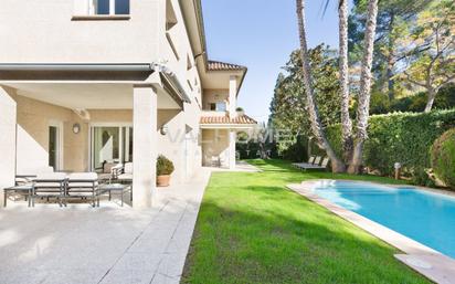 Valhome les presenta en exclusiva esta espectacular villa de 745 m², luminosa y con todas las comodidades, ubicada en una de las zonas más exclusivas de Sant Cugat, el Eixample-Golf. Se trata de la opción perfecta para quienes deseen vivir disfrutando de la naturaleza y disponiendo, a pocos minutos caminando, de todos los servicios, así como la estación de ferrocarril que conecta en 15 minutos con la ciudad de Barcelona. En la planta baja nos recibe el vestíbulo, en el cual encontramos las escaleras y el ascensor que comunican las diferentes plantas, así como el aseo de cortesía. El vestíbulo nos conduce a la zona de día, en la que destaca el amplio salón, muy espacioso y luminoso, gracias a su orientación sur y sus grandes ventanales al jardín. El salón está comunicado mediante puertas correderas tanto con la biblioteca, que dispone de una elegante chimenea de estilo francés, como con el comedor, con vistas a la piscina y al porche. A continuación, encontramos la cocina office, y otro porche, equipado con barbacoa y un horno de leña, y que es el entorno perfecto para disfrutar en familia o con amigos del clima mediterráneo. En la primera planta, la casa nos ofrece el dormitorio principal, con baño en suite, vestidor y terraza, y otros tres dormitorios, cada uno con su propio cuarto de baño en suite y armarios empotrados. En la segunda planta encontramos una quinta suite, así como un amplio salón polivalente con chimenea y con acceso a una terraza-solárium, donde podrá disfrutar de magníficas vistas de todo Sant Cugat y al fondo, Montserrat. Finalmente, la planta sótano cuenta con un dormitorio de servicio con baño, una gran sala polivalente, un gimnasio con cuarto de baño completo y el garaje. La villa cuenta con paneles fotovoltaicos, piscina climatizada con nado a contracorriente, aljibe con capacidad para 30.000 litros que recoge el agua de la lluvia para el riego, ascensor, hilo musical, carpintería exterior con doble cristal de protección de 28 mm de grosor y persianas metálicas, suelos de mármol en la planta baja y parqué en las dos plantas superiores, cuartos de baño de mármol dolomita, calefacción por gas y por bomba de calor, así como aire acondicionado. Si desea más información sobre esta espléndida vivienda familiar o si desea visitarla, no dude en ponerse en contacto con nosotros.
