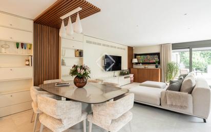 Lucas Fox presenta esta excepcional casa unifamiliar completamente reformada en 2020, en una tranquila calle residencial de la prestigiosa zona del golf de Sant Cugat del Vallès. Esta elegante propiedad cuenta con un diseño contemporáneo, tecnología avanzada y todo tipo de detalles de lujo en un entorno privado. La casa de 385 m² construidos sobre una parcela llana de 600 m² goza de orientación sur que ofrece luz natural durante todo el día. La entrada principal nos da la bienvenida con un elegante recibidor con vestidor independiente y aseo de cortesía, que da paso a un amplio salón-comedor con abundante luz natural, gracias a los ventanales de gran formato, con doble acristalamiento de seguridad y filtro solar. Por los grandes ventanales, se ofrece salida directa al jardín. La moderna cocina office destaca su diseño funcional y de calidad. Viene equipada con electrodomésticos de alta gama (Neff y Miele), con placa de inducción, teppanyaki, dos hornos (uno de vapor), cava de vinos, sistema de ósmosis y zona de aguas independiente, además de una península central ideal para el día a día. En esta misma planta se encuentra un dormitorio con vestidor y baño privado, además de un aseo de cortesía y entrada interior al garaje. En la planta superior, encontramos la zona de noche, con acceso desde una puerta de seguridad. Ofrece un segundo dormitorio con vestidor y baño privado, así como dos amplios dormitorios dobles que comparten un elegante baño completo. El jardín de bajo mantenimiento está presidido por una espectacular piscina salina con zona de playa integrada, preinstalación de calefacción y sistema de limpieza automático Net&Clean. Cuenta con un diseño paisajístico con césped artificial premium con riego automatizado por goteo. Además, dos espléndidos porches completan el espacio exterior: uno con pérgola bioclimática, ideal para disfrutar a cualquier hora; y otro con barbacoa en Dekton a medida, fregadero y nevera integrados, perfecto para reuniones al aire libre. La vivienda ofrece un conjunto de calidades destacadas. Dispone de materiales de gran calidad como mármol Calacatta, cerámica Mutina, grifería Hansgrohe y sanitarios Villeroy & Boch. Para mejorar la eficiencia energética, incluye 24 placas solares instaladas en 2024, carpintería de aluminio con rotura de puente térmico, doble acristalamiento, mosquiteras y persianas eléctricas de seguridad y fachada con revestimiento hidrófugo de alta durabilidad. Para lograr un mayor confort, dispone de un sistema de domótica integral para el control de la iluminación, la climatización y las persianas, climatización por conductos y suelo radiante en toda la vivienda y sistema de alarma con videovigilancia 24 horas. Se encuentra en una ubicación inmejorable en Sant Cugat: a tan solo 15 minutos de Barcelona, a escasos 5 minutos a pie del Club de Golf, a 12 del centro y la estación tren y ofrece parada de autobús a 20 metros. Póngase en contacto para más información.