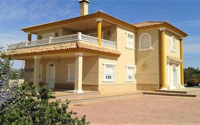 Estupendo chalet entre Elche y la Hoya tiene dos plantas total 440m2.,. en planta baja tenemos la coicna, galería, 4 dormitorios, 2 baños, porchada, cochera cubierta. En la planta alta tenemos Salón, cocina, galería, terraza, dormitorio con baño, otro dormitorio y otro baño. El suelo del chalet es de gres, ventanas en aluminio, puertas macizas de roble, armarios empotrados, zonas ajardinadas, dispone de luz y agua potable.