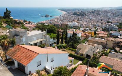 R02532 GRAN CASA CON VISTAS ESPECTACULARES AL MAR Y PISCINA EN MONT FERRANT DE BLANES. My Home Costa Brava les ofrece esta encantadora casa con vistas espectaculares al mar, pueblo y las montañas en Mont Ferrant de Blanes. La casa dispone de 433m2 y se distribuye en tres plantas: La planta superior a nivel de calle se distribuye en recibidor, una gran sala polivalente en la que podría hacerse una vivienda independiente y acceso a la terraza con preciosas vistas al mar y a la montaña y un garaje para 2 coches. La planta inferior dispone 1 dormitorio tipo suite con baño completo, 4 dormitorios dobles, 1 despacho, 1 habitación de planchado, 3 dormitorios individuales y 2 aseos con ducha. La planta baja dispone de un acogedor recibidor, gran comedor independiente , salón luminoso con chimenea y acceso al jardín, una cocina independiente totalmente equipada con salida al jardin, despensa, dormitorio individual (actualmente utilizado como oficina), baño equipado con ducha y zona de lavandería. La casa cuenta ventanas de doble acristalamiento , calefacción a gasoil, persianas y rejas de seguridad. En el exterior, la casa está rodeada de un terreno de 873m2 , muy bien mantenido, con vistas espectaculares al mar, pueblo y las montañas, zona de piscina, zona chill-out cubierto y además un gran jardín con árboles y palmeras. La casa dispone de un garaje cerrado para 2 coches y zona de parking dentro de la parcela para 3 coches mas. Esta propiedad no solo destaca por su calidad y confort, sino también por su ubicación privilegiada cerca de la ciudad de Blanes y sus famosas playas, ofreciendo una combinación perfecta de privacidad y accesibilidad. Es, sin duda, una casa ideal para aquellos que buscan un refugio exclusivo en uno de los rincones más codiciados de la costa y a unos pocos pasos de la playa y de todos los servicios publicos. La urbanización dispone de vigilancia las 24 horas. No dudes en llamarnos para mas informacion y visitas!