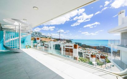 Precioso ático con preciosas vistas al mar, situado en la parte baja de El Higuerón, en una zona tranquila, exclusiva y muy bien comunicada, rodeada de naturaleza y con fácil acceso a todos los servicios. La vivienda destaca por su excelente calidad de construcción y por el uso de materiales de alta gama, ofreciendo un ambiente moderno, elegante y muy confortable. El ático cuenta con dos amplios dormitorios con armarios empotrados y dos baños completos, uno de ellos en suite, ambos diseñados con acabados actuales y funcionales. La distribución es cómoda y luminosa, con espacios bien aprovechados y una sensación de amplitud en toda la vivienda. Desde el salón se accede a una magnífica terraza de más de 30 metros cuadrados, ideal para disfrutar de comidas al aire libre, momentos de relax o reuniones sociales, siempre acompañados de unas impresionantes vistas abiertas al mar. Como gran valor añadido, la propiedad dispone de un espectacular solárium privado de aproximadamente 120 metros cuadrados, equipado con zona de barbacoa y amplios espacios para crear una zona chill out, tomar el sol o disfrutar de veladas inolvidables con vistas panorámicas al Mediterráneo. La vivienda incluye plaza de garaje y forma parte de una cuidada urbanización con una bonita piscina comunitaria, perfecta para disfrutar del excelente clima durante todo el año. Una propiedad exclusiva que combina ubicación, calidad, vistas y amplios espacios exteriores, ideal tanto como residencia habitual, segunda vivienda o inversión de alto nivel. #ref:higueron b