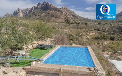 Referencia 57057 Fantástica casa con amplia parcela en tranquila zona residencial de Busot (Alicante), muy bien localizada y con magníficas vistas al valle y el Cabeçó d?€?Or. Dispone de una amplia parcela de 2.250 m2 bien acondicionada y con grandes posibilidades. Se trata de una propiedad totalmente exterior, amplia y luminosa, con buena distribución y grandes posibilidades para dotarla de nuestro estilo personal. De sólida construcción, se encuentra en muy buen estado y dispone de suelos de gres, carpintería de pino, estufa chimenea, instalación de placas solares y ventanas aluminio climalit, entre otras mejoras. El amplio salón dispone de dos ambientes y cuenta con terraza exterior acristalada y acondicionada, con magníficas vistas. La vivienda cuenta con 3 amplias habitaciones exteriores y 2 baños completos, disponiendo el dormitorio principal de baño en suite. Cuenta además con gran terraza solárium de 120 m2, cuarto trastero y zona de piscina en la parcela. La vivienda está rodeada de un entorno muy tranquilo. Hay que recordar su privacidad y, al mismo tiempo, su proximidad a todos los servicios posibles y su cercanía a varios núcleos urbanos y a varias zonas residenciales. Una propiedad con grandes posibilidades por su amplitud, distribución y ubicación, su óptimo estado y su espaciosa parcela. Concierte ahora una visita y compruebe personalmente la oportunidad que supone su adquisición. La presente publicación tiene carácter meramente informativo, orientativo y no vinculante, por lo que no supone información contractual alguna, siendo su uso estrictamente comercial. Este anuncio puede contener errores, se muestra a título informativo de la información recibida, sin ser responsable la inmobiliaria de dichos errores. Nota informativa conforme al Art. 20 TRLGDCU El precio de venta publicado no constituye una oferta vinculante y no incluye los gastos e impuestos derivados de la compraventa. La operación puede estar sujeta a ITP y/o IVA. Se estiman unos costes adicionales de Notaría, Registro de la Propiedad y Tasación. Honorarios inmobiliarios a cargo del vendedor.