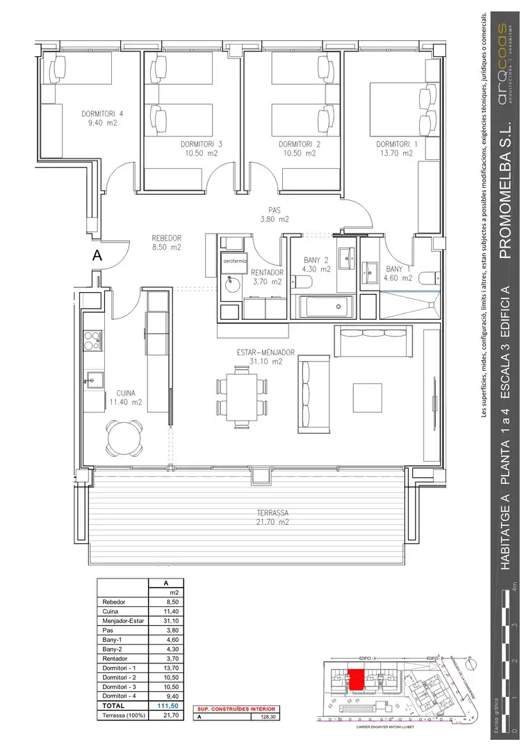 Des de MELBA HOMES, tenim el plaer de presentar-vos RESIDENCIAL PYROS, dos edificis de 22 i 24 exclusius habitatges de 2, 3 i 4 habitacions, amb increïbles terrasses, magnífica zona comunitària amb piscina i jardins, amb una qualificació energètica AA, garantint la màxima eficiència i estalvi energètic. Places d'aparcament i trasters disponibles al mateix edifici.
