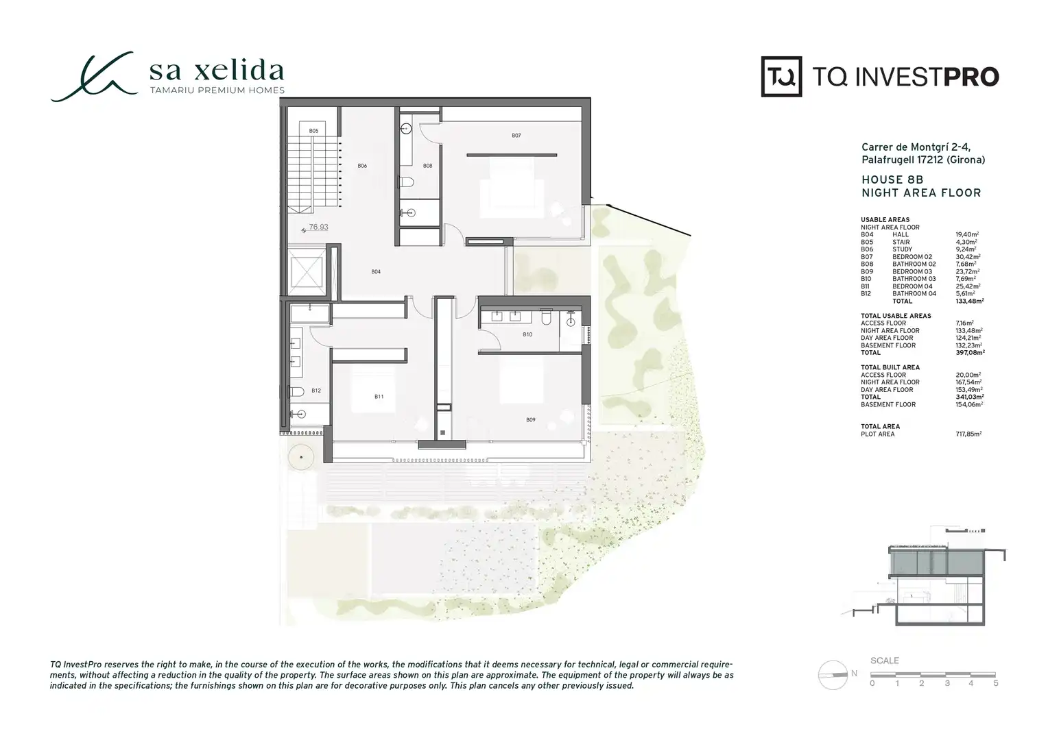 Cada residencia está meticulosamente diseñada en cuatro plantas para ofrecer un estilo de vida exclusivo y cómodo. La planta de acceso cuenta con zona de aparcamiento privada para dos coches. La planta de noche alberga los dormitorios, mientras que la planta de día incluye cocina, comedor y una terraza cubierta para disfrutar del entorno. Además, un sótano polivalente ofrece opciones como sala de cine, bodega, gimnasio o estudio, junto con más espacio de almacenaje.