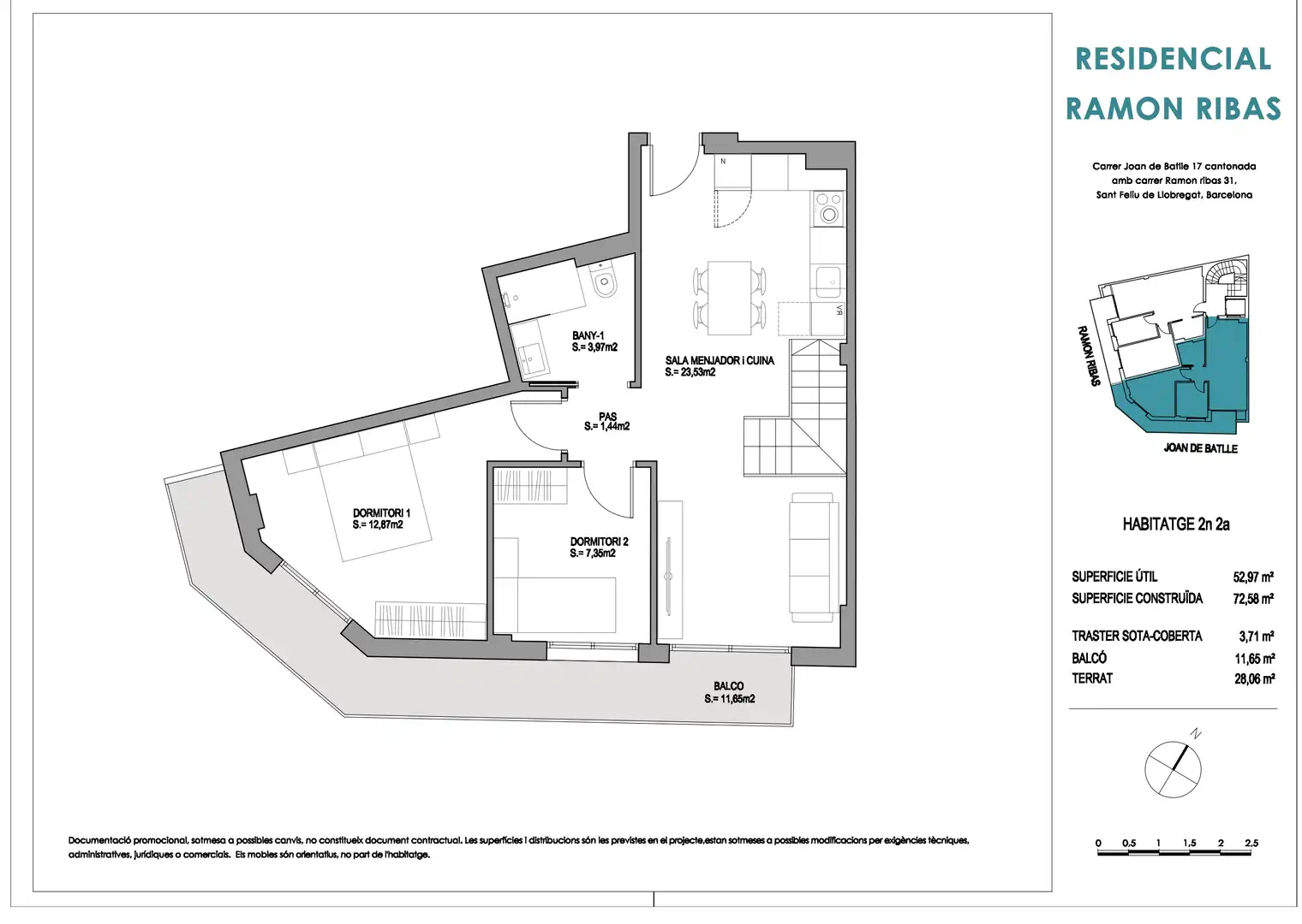 - Terraza privada de 28,06 m² + balcón de 11,65 m²