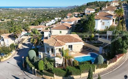 En una privilegiada ubicación en esquina dentro de la codiciada urbanización Porta de Orba, esta villa excepcionalmente bien cuidada se presenta como un elegante refugio con impresionantes vistas panorámicas sobre las montañas circundantes hasta el mar Mediterráneo. Situada en una amplia parcela en esquina de 600 m², la propiedad combina elegancia mediterránea, privacidad y una distribución bien pensada, ideal tanto para vivienda habitual como para recibir invitados. La villa dispone de una superficie construida de 172,54 m² distribuida en dos plantas completas, lo que ofrece múltiples posibilidades de uso. Nada más entrar en la planta superior, el vestíbulo abierto con techos altos y grandes superficies acristaladas transmite una agradable sensación de amplitud y luminosidad. Las vistas se abren inmediatamente hacia el paisaje, subrayando el carácter especial de esta propiedad. El salón-comedor de concepto abierto con cocina integrada constituye el corazón de la vivienda y combina un estilo de vida elegante con el máximo aprovechamiento de las vistas. Los grandes ventanales garantizan una atmósfera luminosa y acogedora durante todo el día y crean una transición fluida entre el interior y el exterior. En esta planta también se encuentra el amplio dormitorio principal con baño en suite, otra habitación ideal como dormitorio de invitados o despacho, así como un segundo baño con ducha de diseño moderno. La planta inferior está concebida como una zona independiente para invitados y ofrece un alto nivel de confort y privacidad. Dispone de su propio salón, dos dormitorios, un baño con ducha y un pasillo con prácticos armarios empotrados. Este espacio es ideal para visitas, familiares adultos o incluso para su uso parcial como una vivienda independiente. Un cuarto técnico independiente ofrece espacio de almacenamiento adicional. La zona exterior es otro de los grandes atractivos de esta propiedad. El jardín de estilo mediterráneo rodea la vivienda con varias terrazas que permiten disfrutar del sol o de la sombra a cualquier hora del día, siempre acompañados de las magníficas vistas a las montañas o al mar. La terraza de la piscina privada, con piscina climatizada de 8 x 4 metros y cubierta solar, invita a relajarse durante todo el año y ofrece un alto grado de privacidad. Un amplio carport completa esta atractiva oferta y proporciona un cómodo espacio para vehículos. Esta villa en Porta de Orba combina una ubicación privilegiada con vistas, una sólida calidad de construcción y un concepto de vivienda bien pensado, lo que la convierte en una propiedad ideal tanto como residencia permanente exclusiva como residencia vacacional de alto nivel.
