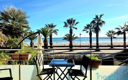 ¿Quieres vivir y levantarte cada día mirando al MAR ? solo tienes que cruzar la puerta de tu jardín para pisar la arena? Vivir aquí es como estar de vacaciones todo el año! no puedes perderte esta exclusiva planta baja con un jardín privado y salida directa al paseo marítimo y a la playa, para que escuches el sonido de las olas desde el salón o disfrutes de un baño en el mar sin preocuparte por ascensores ni escaleras. ¡Una entrada independiente desde el jardín que aporta total comodidad y privacidad! Se trata de una planta baja alzada de más de 100 metros útiles , en una comunidad de calidad, la vivienda distribuida a dos vientos lo que le dota de mucha ventilación y luz. El salón y la cocina MIRANDO AL MAR! y a la bonita terraza, en simbiosis por completo con el salón, disfrutarás de la terraza y su jardín en todos los momentos del día! LA LUZ , la protagonista de estos ambientes. Cocinarás mirando al mar, desayunaras y comerás mirando al mar, un privilegio que no tienen todos los pisos. En la parte de atrás de la vivienda encontramos dos habitaciones amplias, un baño completo y una gran suite con vestidor y baño (de las 3 habitaciones dos dan a patio de luces). EQUIPACIONES, la casa tiene una galería /lavandería, calefacción y aire acondicionado por conductos, carpintería de aluminio doble climalit, y porticones de aluminio en salón, descalificador comunitario para agua potable, toldos Acaba de completar la vivienda, una plaza de parking para coche grande y un trastero. ANIMATE a verla con nosotros, te ayudaremos en todo lo que sea necesario para que puedas adquirir esta joya: a encontrarte la mejor financiación del mercado, o a vender tu vivienda en un tiempo record. Llámanos al 661234960 o al 667390959. Te esperamos!
